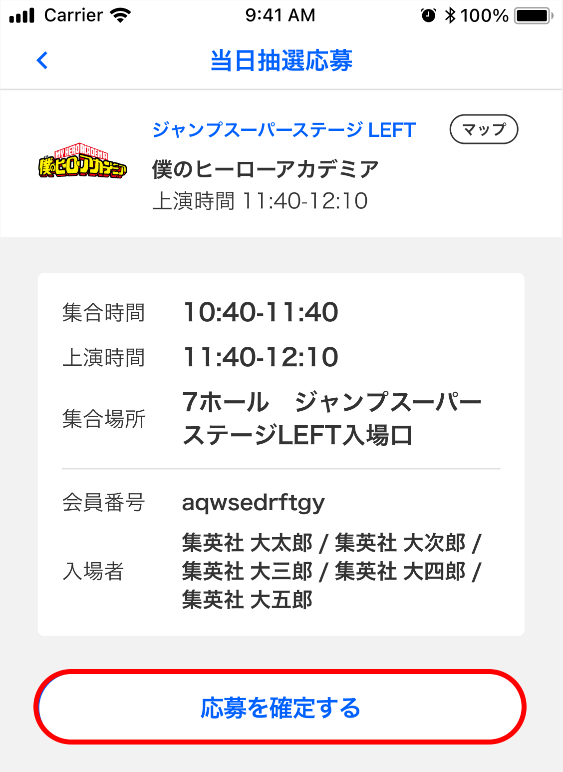 応募締切は開演時間の30分前となり、当落は開演時間の20分前までに通知します。